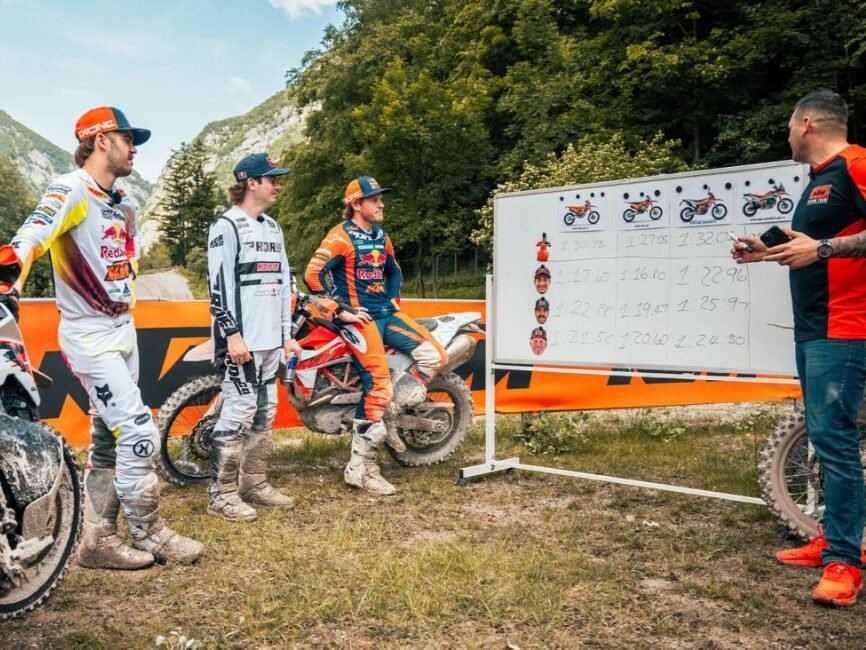 Cada corredor intercambió entre cuatro modelos diferentes de KTM, representando distintos segmentos del mundo del motociclismo: Enduro, Motocross, Rally y Adventure.
